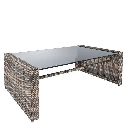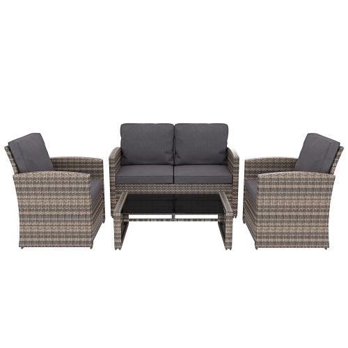 Salottino Da Giardino Salotto in Rattan Set Di Mobili 4 Posti con Tavolino Ripiano In Vetro Divano 2 Posti E 2 Poltrone Per Esterno Terrazzo Balcone Piscina Cuscini Sfoderabili Colore Marrone Chiaro